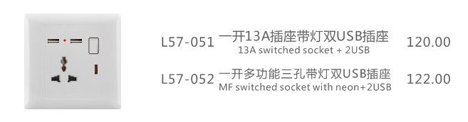 一开插座带灯双USB插座